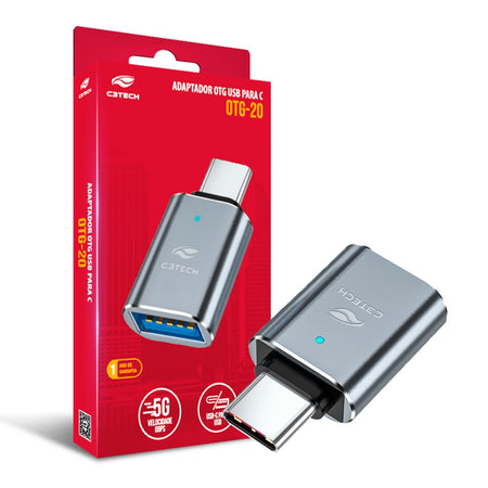 Adaptador OTG-20 C3Tech, USB-C Macho para USB-A Fêmea, USB 3.0 até 5 Gbps, Carregamento Rápido, Compacto