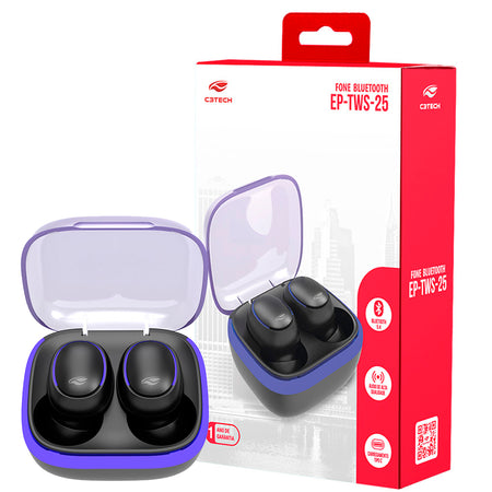 Fone de Ouvido C3Tech Sem Fio, In-Ear, Bluetooth 5.3, EP-TWS-25BK - Preto
