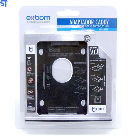 Gaveta Caddy Adaptador Para Segundo HD Notebook ou SSD 9,5mm- HDCA -S095- Exbom