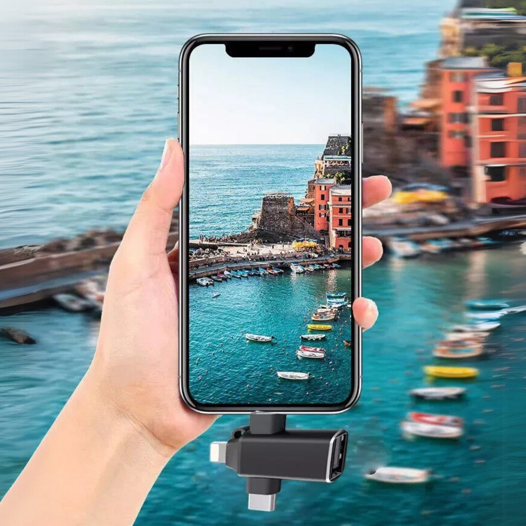 Conecte seus dispositivos de forma prática e rápida com o Adaptador OTG 3 em 1 KP-H006 da Knup. Com conexões para USB-C, Lightning (iPhone) e Micro USB (V8), ele é ideal para transferir arquivos, conectar periféricos como teclados, mouses e pendrives diretamente em smartphones e tablets.