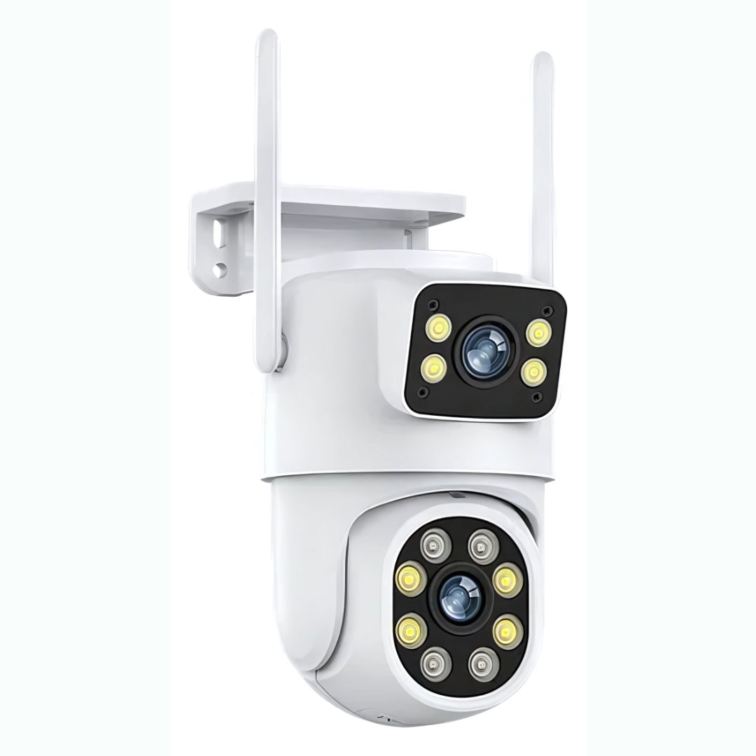 A Câmera de Segurança Dupla Giratória IP Wi-Fi Full HD 10MP Tuya é uma solução avançada para monitoramento residencial e empresarial. Equipada com duas lentes de alta definição, oferece imagens nítidas com resolução de até 10 megapixels.