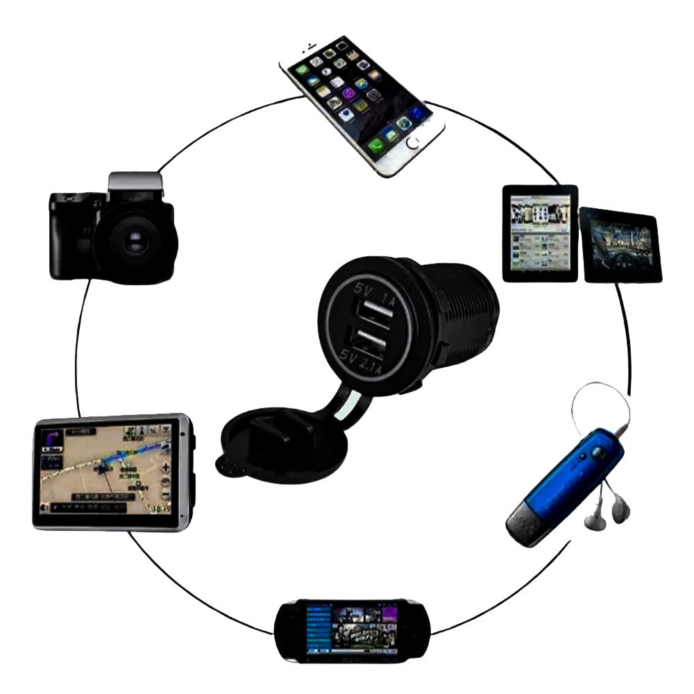 O Carregador Veicular 12-24V é a solução prática e eficiente para manter seus dispositivos móveis carregados durante viagens. Equipado com duas saídas USB, oferece correntes de 1A e 2.1A, permitindo o carregamento simultâneo de smartphones, tablets, GPS, entre outros aparelhos eletrônicos.