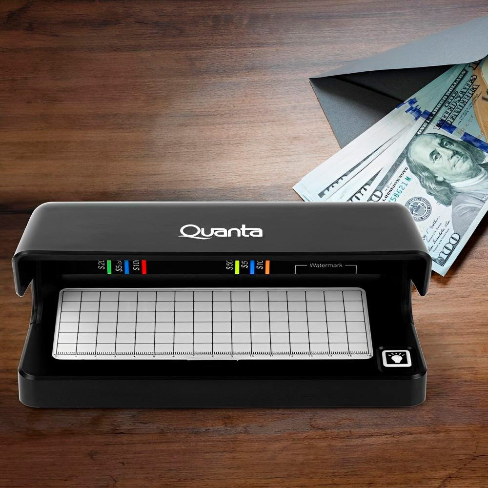 O detector de dinheiro falso Quanta QTDBF30 é um equipamento compacto e eficiente para identificação de notas falsificadas. Utilizando tecnologia de luz ultravioleta (UV), ele destaca elementos de segurança presentes nas cédulas originais, permitindo a verificação rápida e precisa.