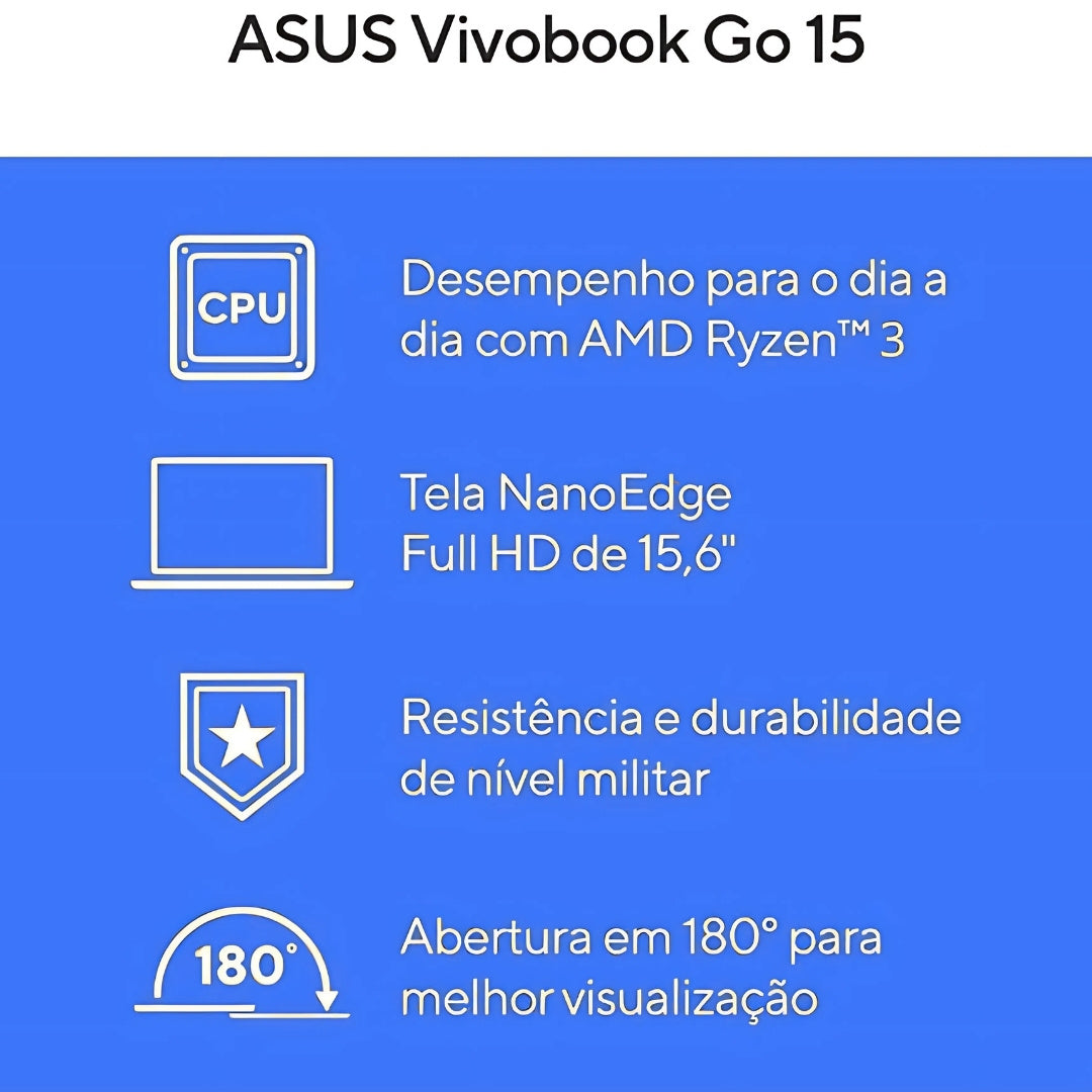 Projetado para tornar sua rotina mais eficiente e oferecer entretenimento em qualquer lugar, o ASUS Vivobook Go 15 alia portabilidade, desempenho e estilo em um equipamento moderno e funcional. Com processador AMD Ryzen™ 3 7320U, 4 GB de memória RAM e SSD de 128 GB, este notebook é ideal para tarefas do cotidiano, como navegação, estudos, trabalho remoto e consumo de mídia.