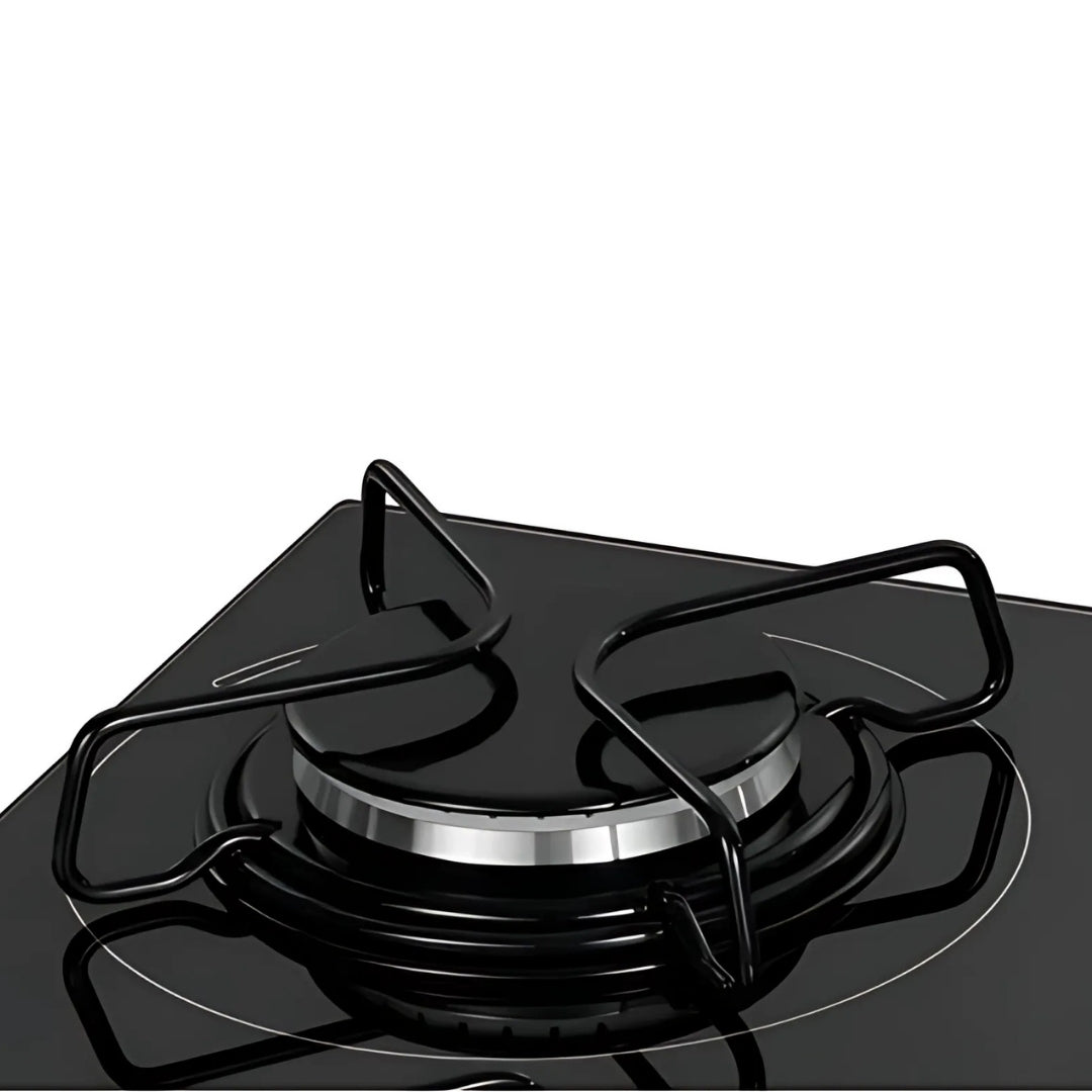 A mesa de vidro temperado de 6mm é resistente a altas temperaturas e impactos, garantindo durabilidade e segurança. As trempes esmaltadas em aço reforçado oferecem estabilidade para panelas de diferentes tamanhos, enquanto a válvula de segurança corta o gás automaticamente em caso de apagamento da chama, proporcionando tranquilidade durante o uso.
