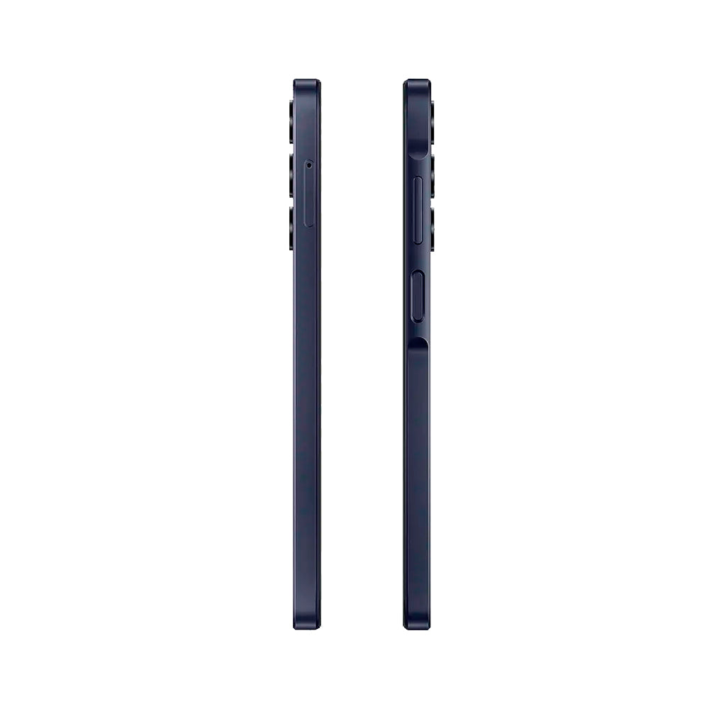 Com dimensões de 161 x 76.5 x 8.3 mm e peso de 197 g, o Galaxy A25 5G apresenta um design moderno com painel traseiro e laterais em plástico fosco, que oferece uma pegada confortável e reduz marcas de impressões digitais. A transição suave entre o painel traseiro e o módulo de câmeras confere um visual elegante, enquanto a cor Azul Escuro adiciona sofisticação. O dispositivo possui certificação IP67, garantindo resistência à água (submersão em até 1 metro de água doce por 30 minutos) e à poeira, tornando-o ideal para uso em ambientes variados, embora não seja recomendado para praia ou piscina.