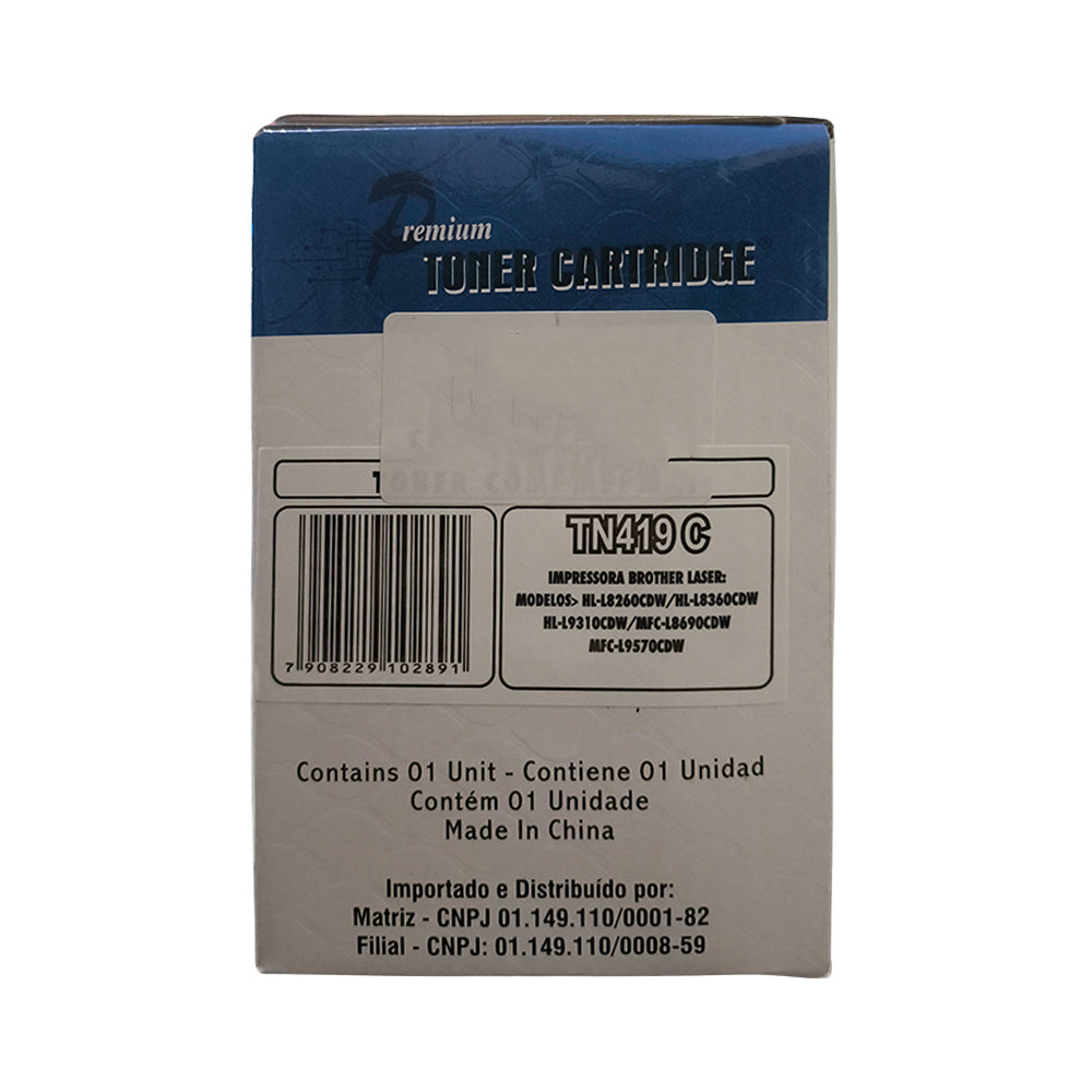 Cartucho de Toner Compatível Brother TN419CY, Ciano, Para HL-L8360CDW, MFC-L8610CDW, MFC-L8900CDW, MFC-L9570CDW - Premium 9K