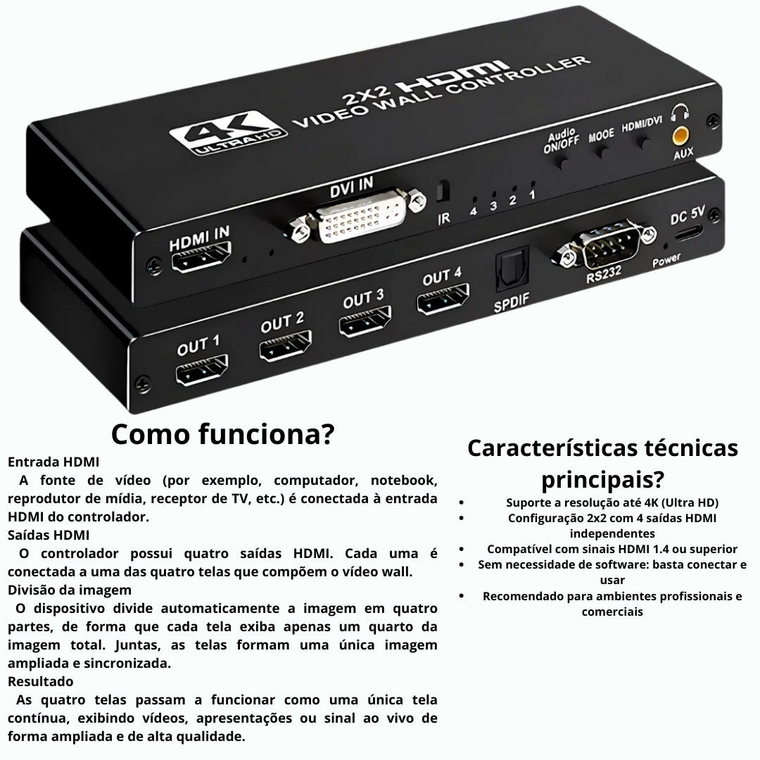 Video Wall Controller 2x2 – HDMI, 4K UHD, Full HD – 4 Telas