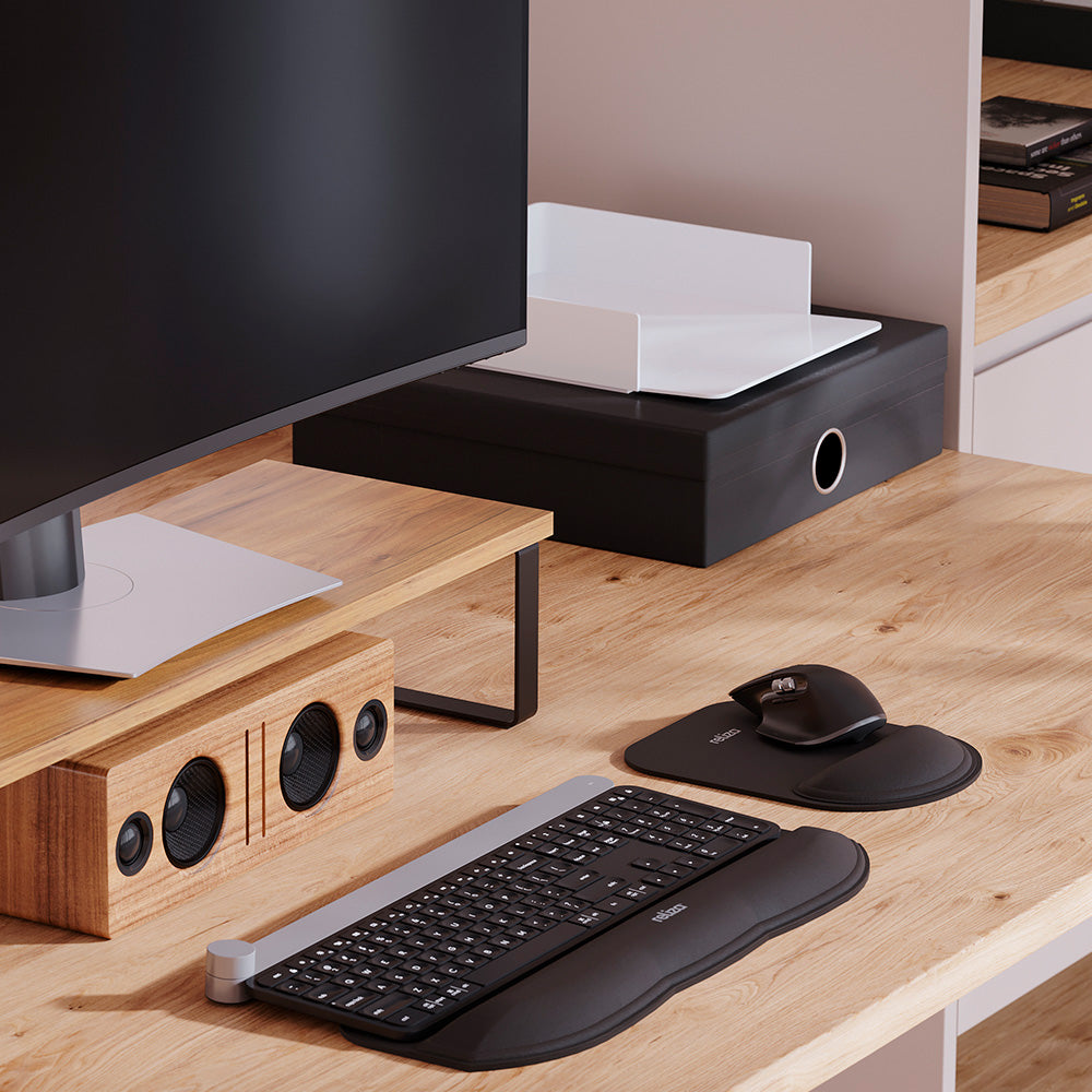- Correção Postural: Mantém os punhos em posição neutra, alinhando-os com o mouse.