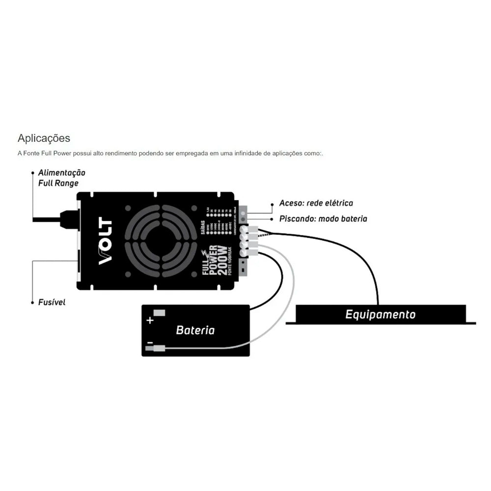 Fonte Nobreak Full Power 200W, 24Vdc/7A, Bivolt 110-220Vac, Saída Estabilizada, Sistema Online - Volt Tecnologia