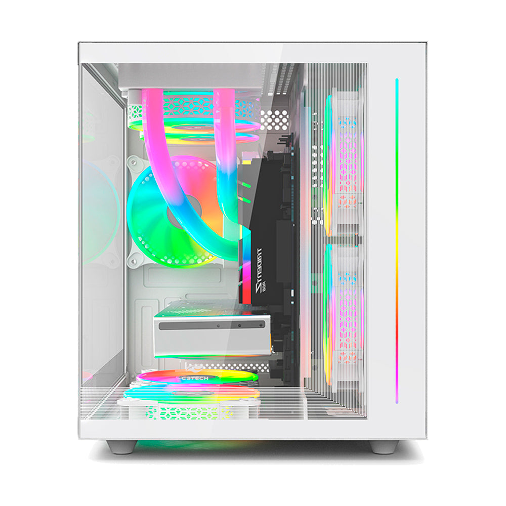 1. Gabinete Gamer C3Tech Gaming Aquarius MT-G810WH, Mini Tower, Micro ATX, Lateral em Vidro Temperado - Branco