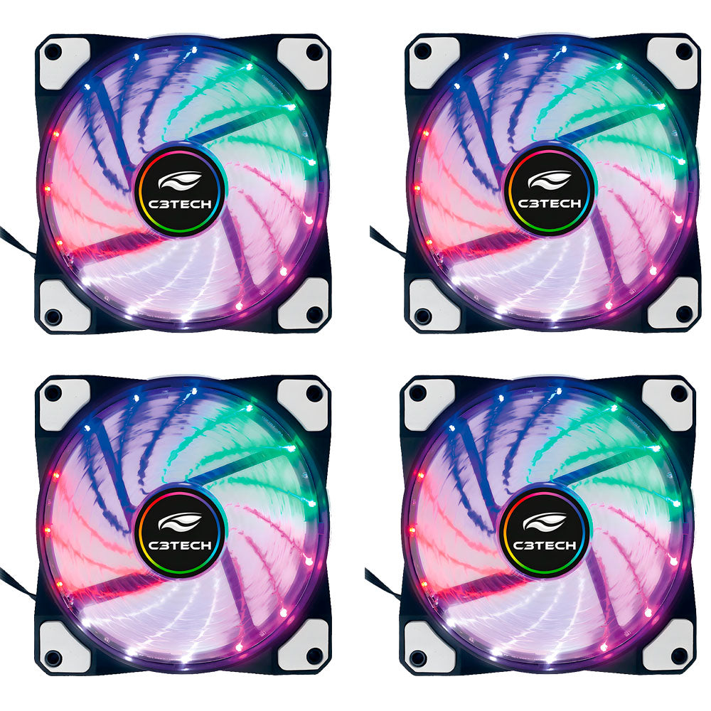 6. 4x - Cooler Fan F9-L110M Multicores Gaming, Com LED 120mm, C3Tech - Preto