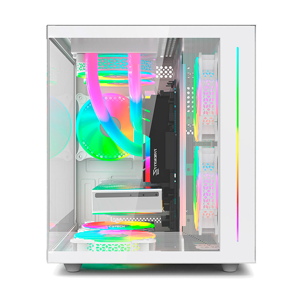 1. Gabinete Gamer C3Tech Gaming Aquarius MT-G810WH, Mini Tower, Micro ATX, Lateral em Vidro Temperado - Branco
