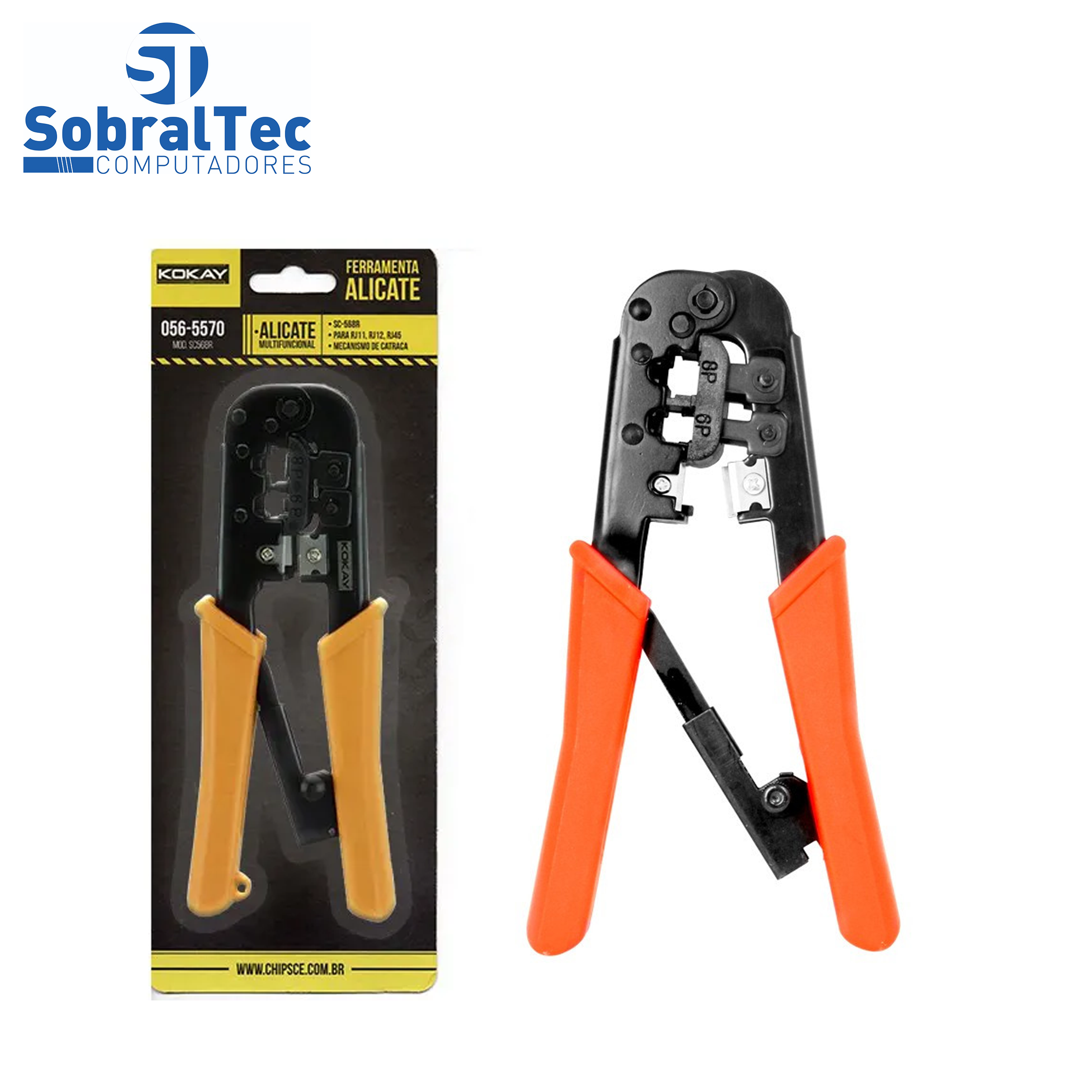 Alicate utilizado por profissionais que trabalham em instalações de redes telefônicas e computadores, este alicate realiza a crimpagem de terminais RJ11 (4 pinos), RJ12 (6 pinos) e RJ45 (8 pinos Cabo Lan) Para montar cabos de rede com par trançado e conectores RJ-45, é preciso utilizar um alicate apropriado Este alicate é normalmente chamado de alicate crimpador ou alicate de crimpagem Corta e desencapa cabos elétricos As ferramentas são produzidas e testadas conforme normas específicas Corpo produzido em chapas de aço Lâminas em aço inoxidável Pintura eletrostática Suporte de plástico com revestimento especial."