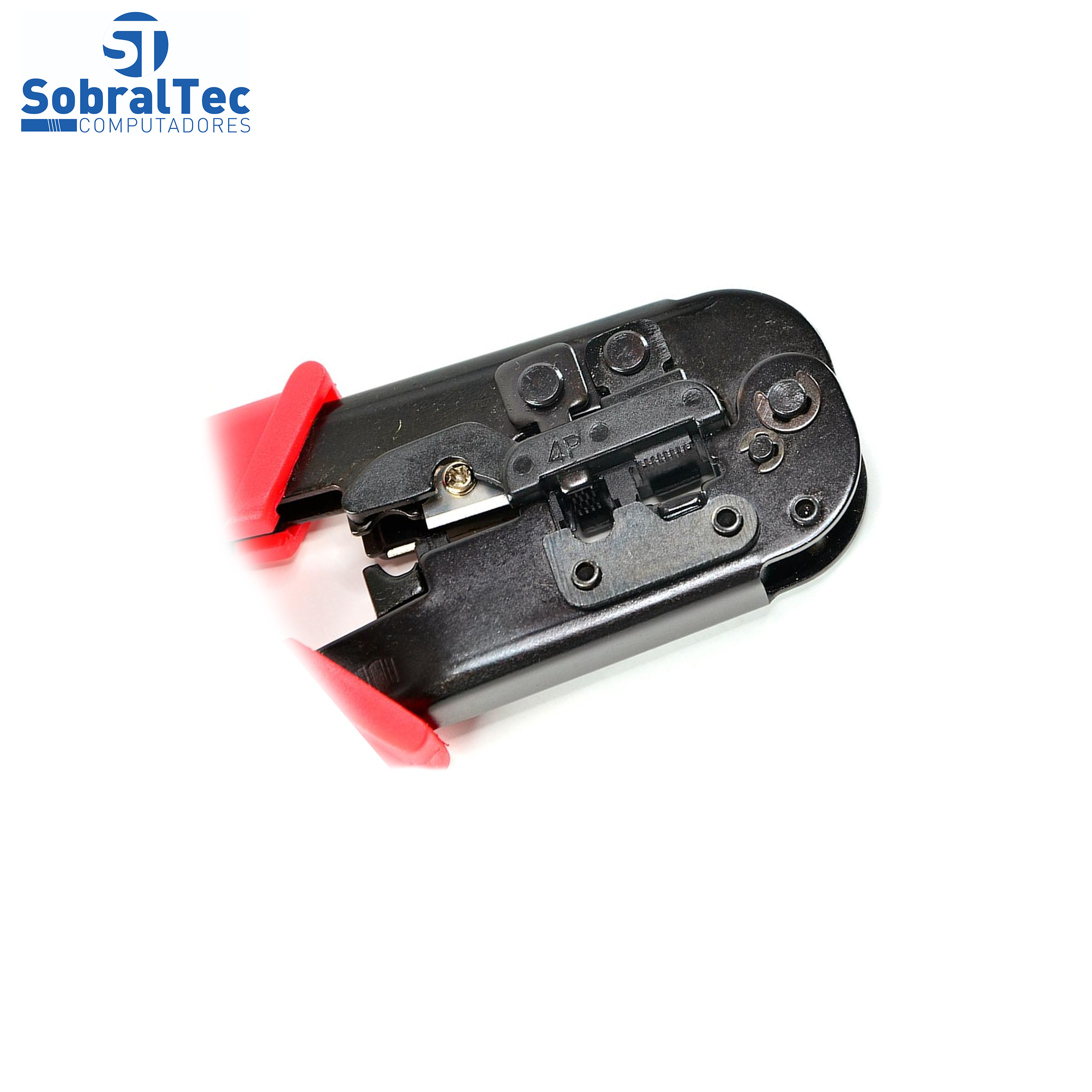 - Crimpa conectores RJ-45 com até 8 vias, RJ-12 com até 6 vias e RJ-11.