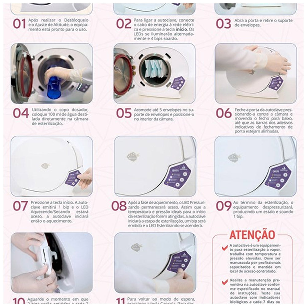 ● Tempo de esterilização: 38 minutos, com secagem (no máximo)