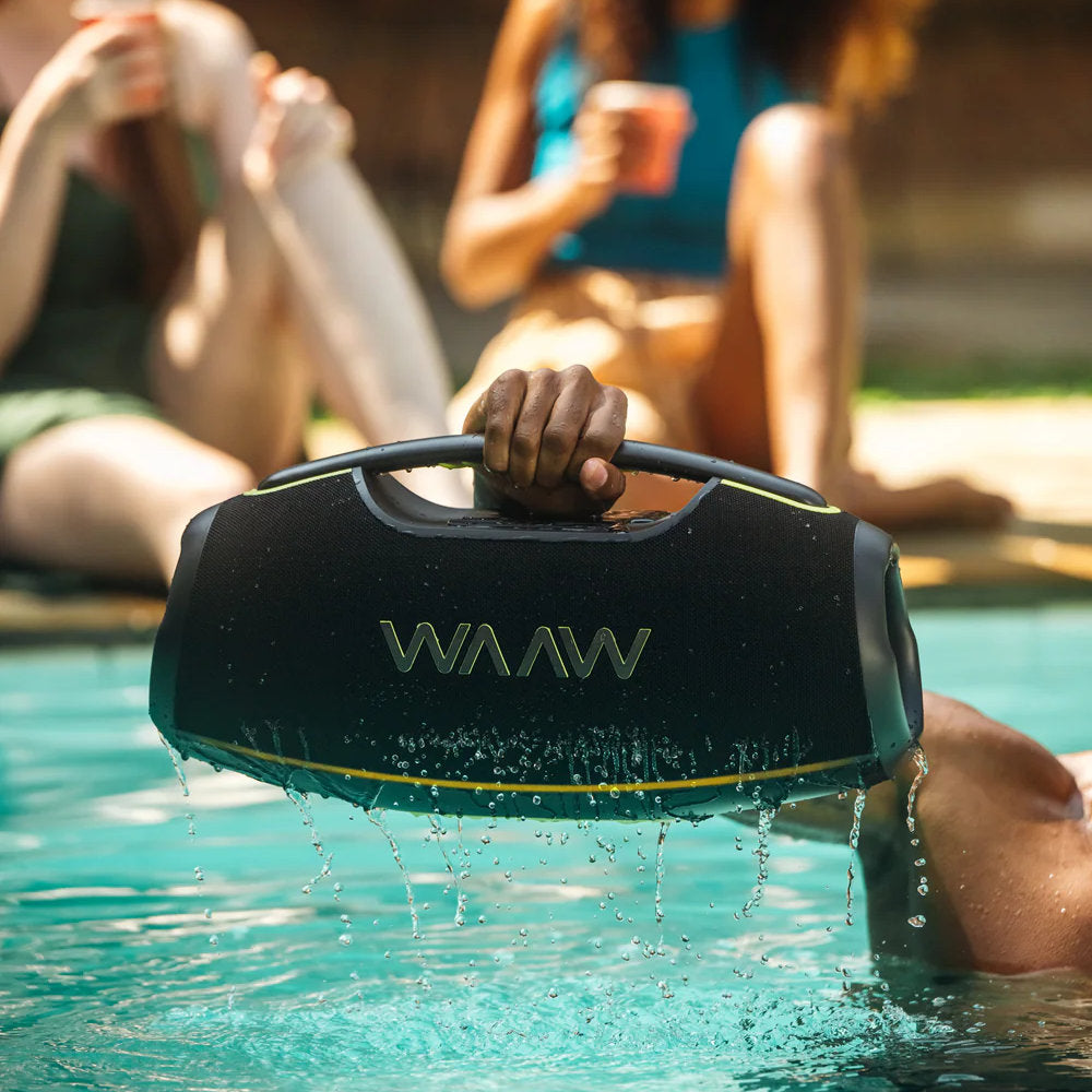 Amplifique o som para uma festa épica mais vibrante! Com a WAAW HYPERBOOM 1000, a música não para após o play. Quem tá junto de verdade, tá junto a qualquer hora.