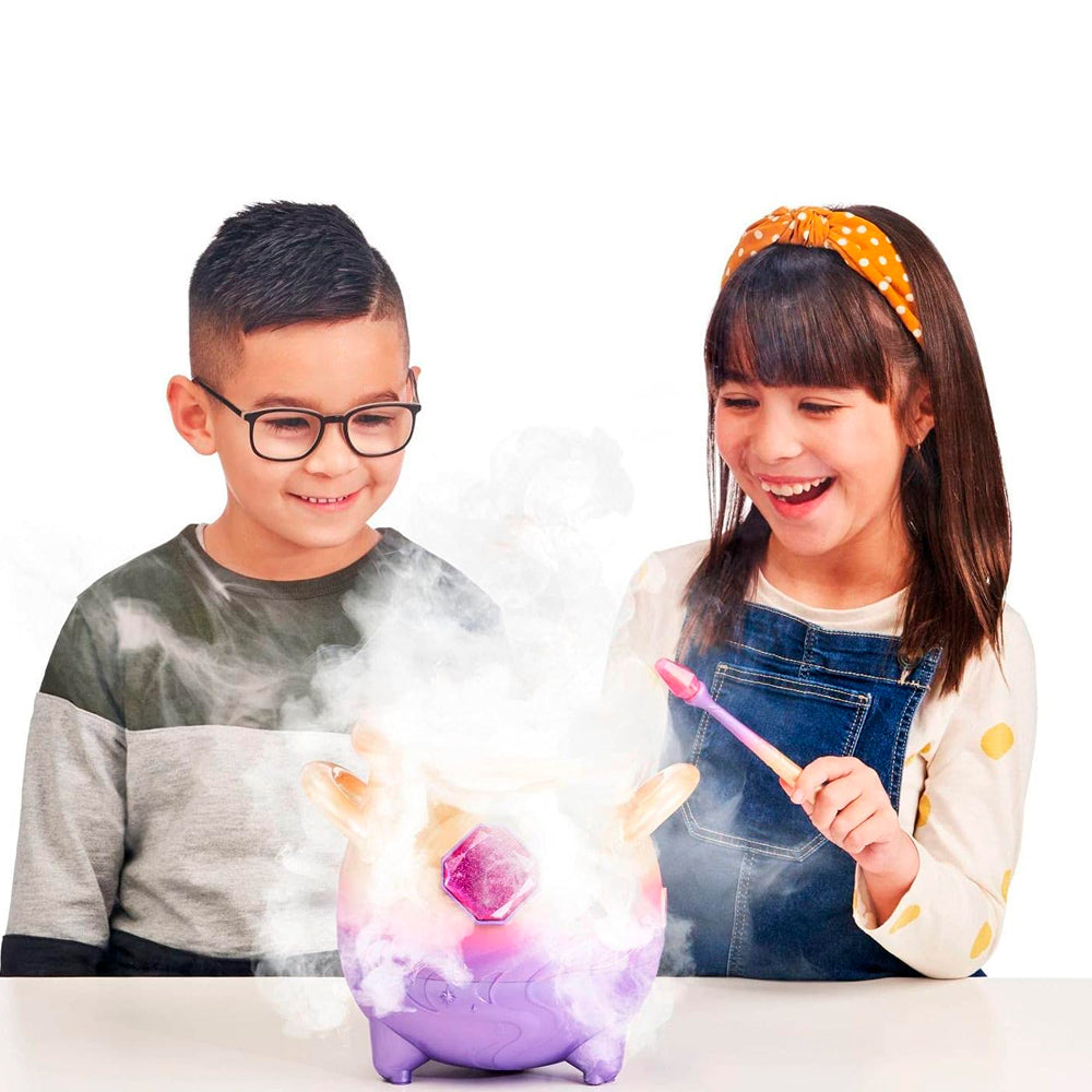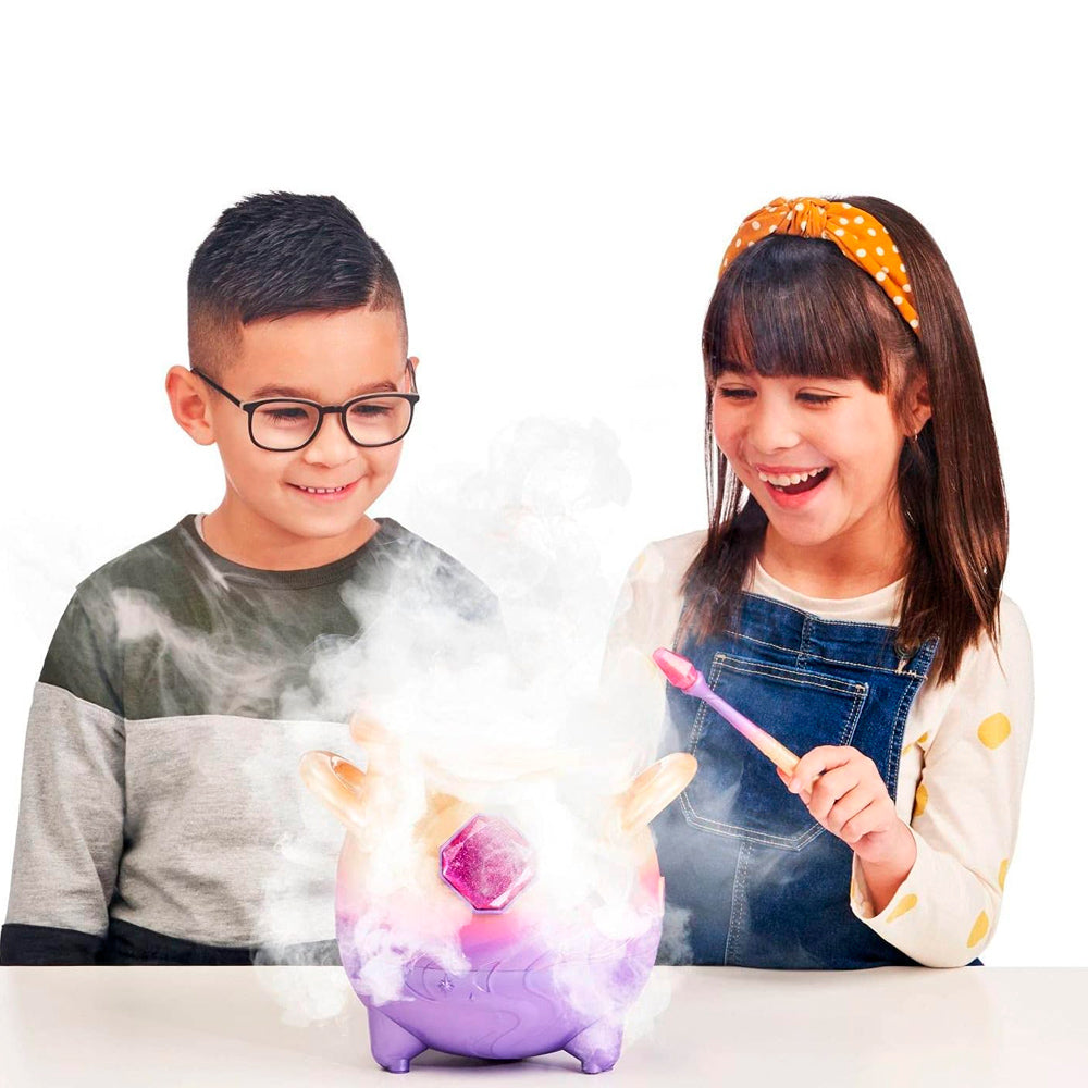 - Instruções Interativas: O caldeirão guia as crianças através de luzes e sons, indicando quando adicionar cada ingrediente e usar a varinha.
