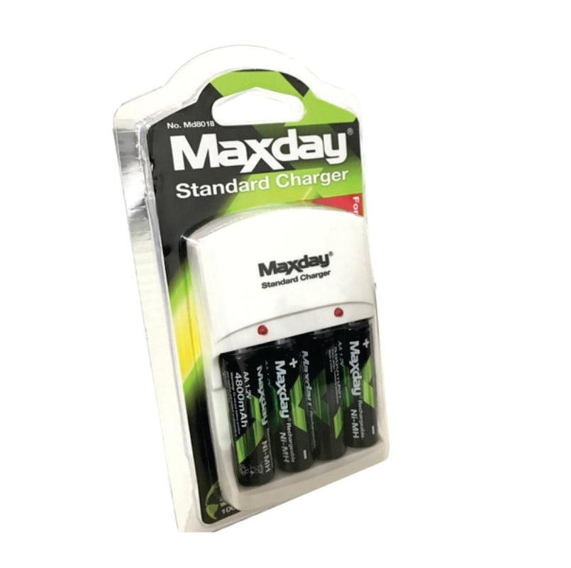 Excelente carregador Maxday de baterias e pilhas, equipamentos digitais de última geração que requerem bateria de alta capacidade para maior e melhor desempenho.