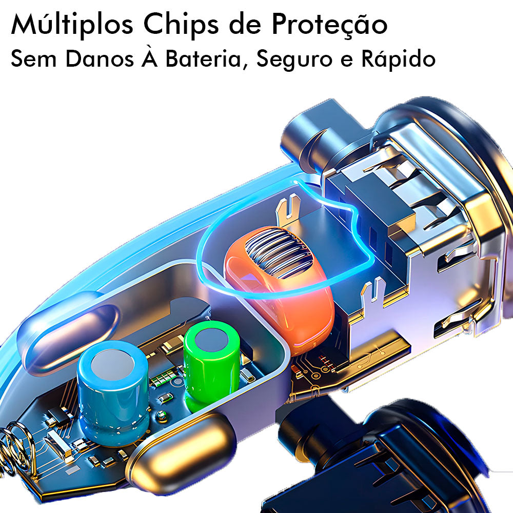 Com uma potência impressionante de 66W, este carregador veicular proporciona carregamento rápido e eficiente, reduzindo o tempo de espera para que seus dispositivos estejam prontos para uso. Ideal para quem está sempre em movimento e precisa de dispositivos carregados rapidamente.