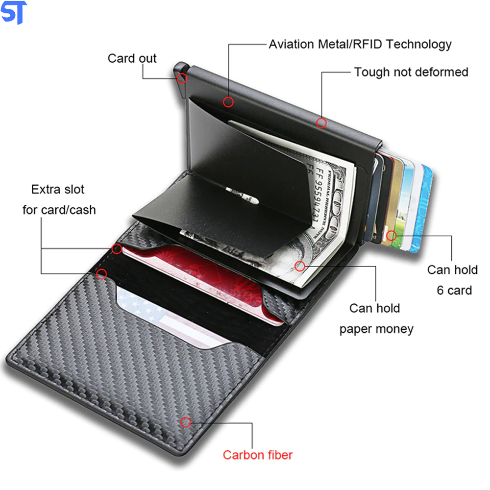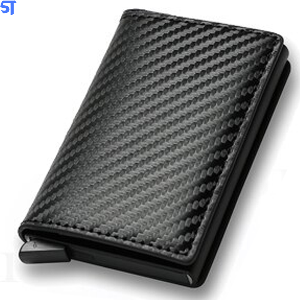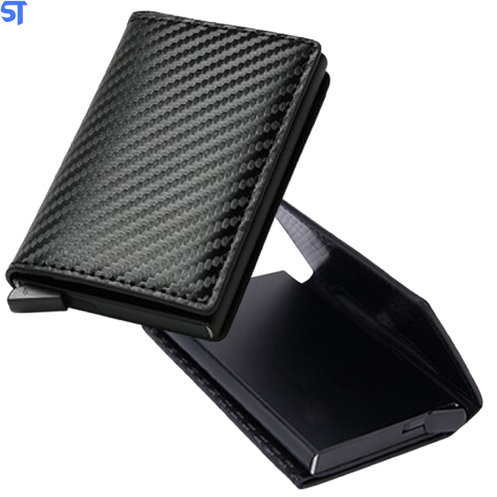 Carteira Porta Cartões Automática Fibra de Carbono Antifurto