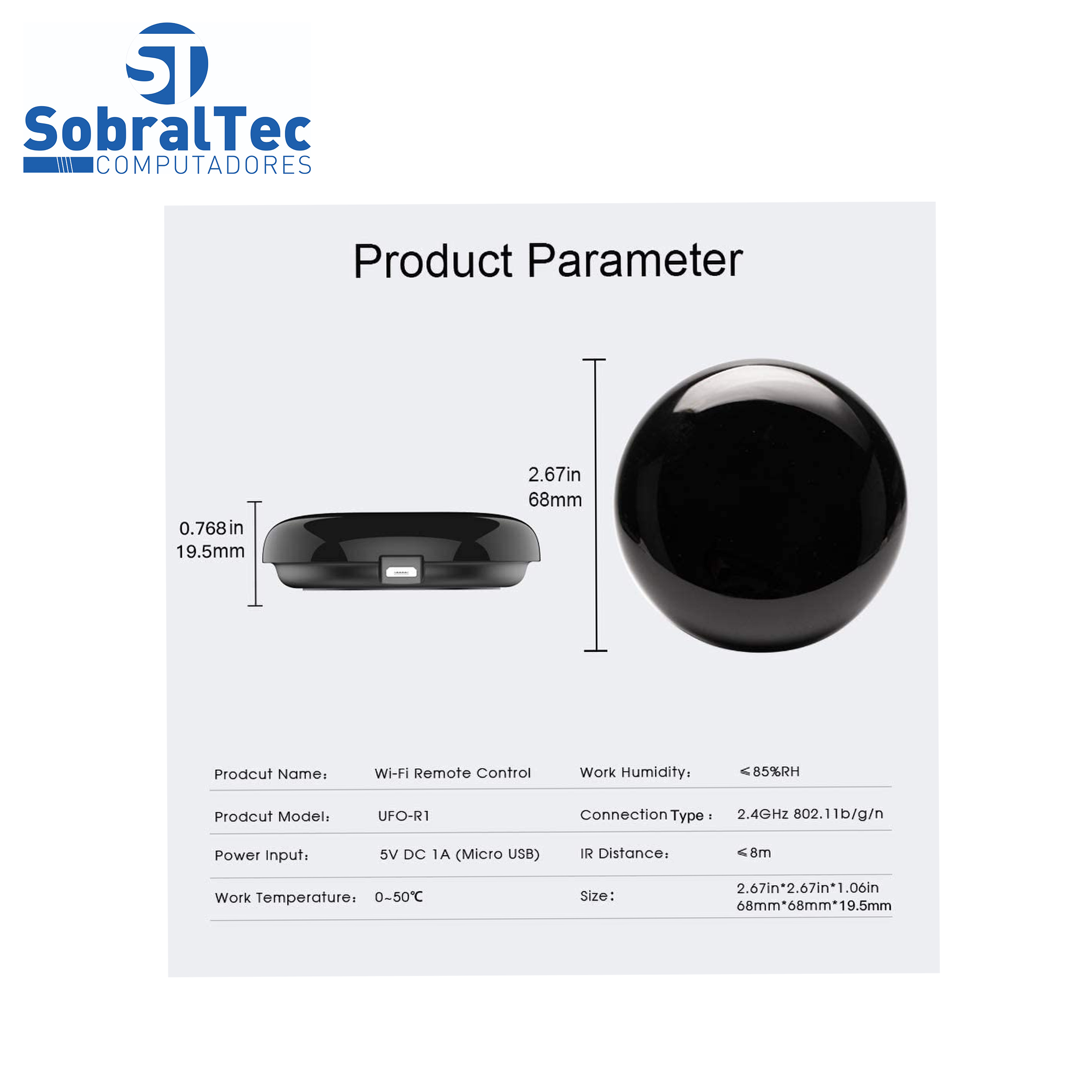 O smart wi-fi UFO R1 é o futuro, agora não precisara de usar vários controles remotos espalhados pela casa, com esse aparelho poderá automatizar e controlar tudo pelo smartphone, conecta somente em dispositivos que tenham infravermelho, como ar condicionados, smart tv, ventiladores, tv box, entre ouros dispositivos. Com UFO R1 você pode tornar seus eletrodomésticos inteligentes sem substituí-los. Transmitindo sinais através dos emissores de infravermelho no produto, você pode usá-lo para controlar seus eletrodomésticos, tais como ar condicionado, smart tv, ventiladores inteligentes, tv box, somente ira se conectar se o dispositivo tiver conexão wi-fi. Ao fazer o download do tuya APP você pode ligar o ar condicionado remotamente ajustar a temperatura do ar condicionado em seu caminho de casa ligar a TV mudar canais de TV e muito mais. Também é compatível com app gratuito na play store chamado “Smart Life” Após baixar o app smart life, abra o app clique em + vá para menu outros, selecione infravermelho inteligente, ira pedir para apertar o botão no dispositivo, localizado na parte de baixo onde conecta o cabo um pequeno botão, fique apertado até que comece a piscar, após isso confirme no app, ira pedir a senha do wifi, após colocar confirme e aguarde completar a conexão, após conectar poderá adicionar os dispositivos que desejar. Para instalar corretamente e conectar com os aparelhos é só seguir as orientações do manual que acompanha o produto. Também suporta função de controle voz do Tmall Gênio Rokid XiaoDu, também adequado para Alexa e para Google controle voz do Assistente Google . Por exemplo, diga Ajustar a temperatura do ar condicionado para 26 graus Celsius, então o seu assistente inteligente irá ajudá-lo a fazer isso. Descrição Técnica: Marca: Moes Modelo: UFO-R1 WiFi Network: WiFi 2.4GHz 802.11b/g/n IR frequência: 38K IR Direção: Múltiplas Dir Distancia Transmissão Infravermelho: 8m/26ft
