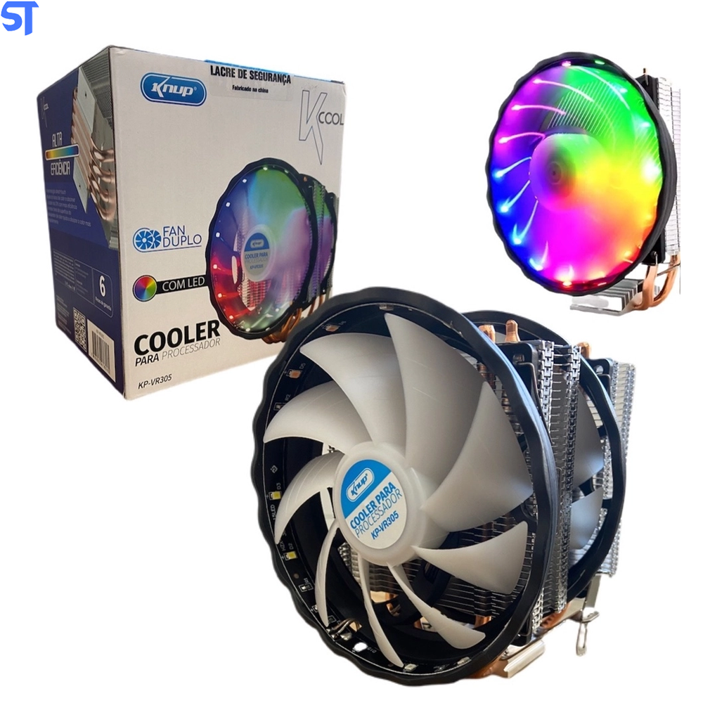 Cooler Fan Para Processador Fan Duplo 120mm Alta Eficiência Com Led 1500 RPM Knup- Kp-Vr305