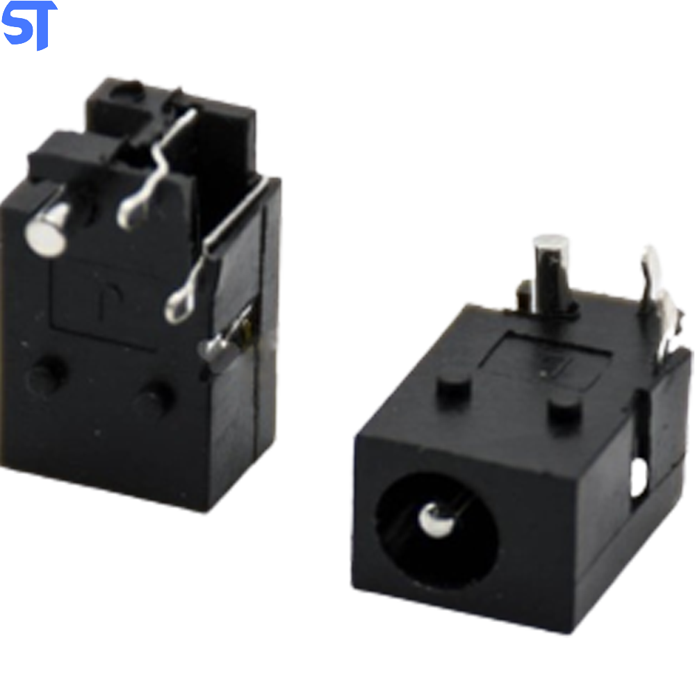 - Conector de alimentação DC, tomada, macho, orifício de passagem, terminal de solda, ângulo reto, sem blindagem, 4,4 * 1,65