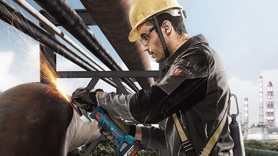 A Esmerilhadeira a Bateria de 5' Bosch GWS 180-L pode ser usada para fazer lixamentos em todo tipo de metal.