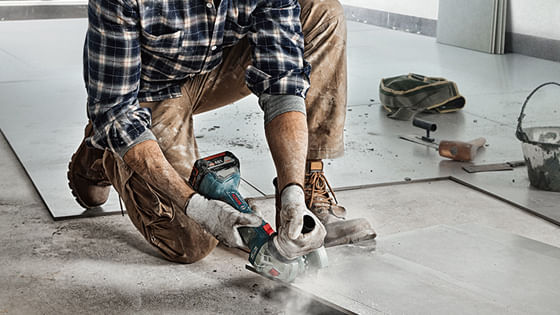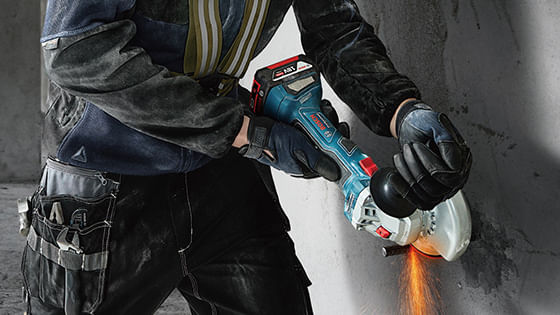 A Esmerilhadeira a Bateria de 5' Bosch GWS 180-LI tem design equilibrado e cabo fino, especificamente otimizado para cortes versáteis.