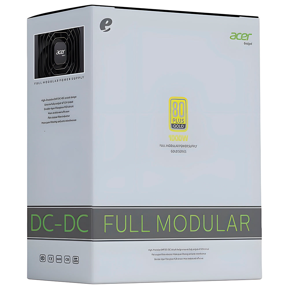 A Fonte Acer AC1000 não é apenas poderosa, mas também eficiente e confiável. Seu design modular facilita a montagem e garante uma estética impecável, enquanto a certificação 80 Plus Gold assegura economia de energia e menor impacto ambiental. A confiabilidade do PFC ativo e os conectores de alta compatibilidade a tornam perfeita para suportar sistemas com alta demanda de energia, como PCs gamer, estações de trabalho ou máquinas de edição e renderização.