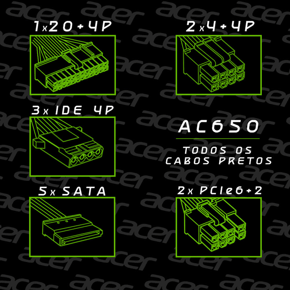 Fonte ATX Gamer Acer AC650 – Potência, Eficiência e Confiabilidade para Setups Exigentes