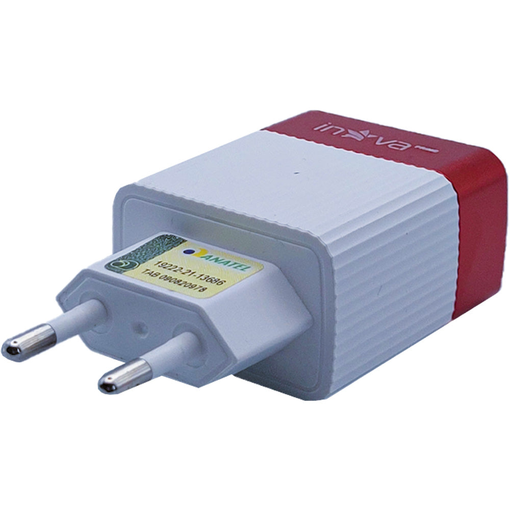 Fonte Carregador Rápido Com 2 Portas USB A 3.1A Inova Branco Com Vermelho - KV-5247