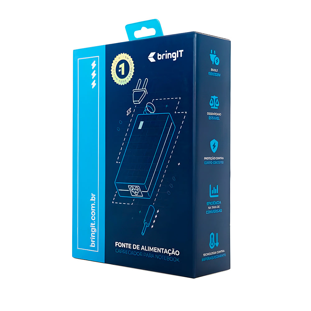 Facilidade de Uso: A fonte de alimentação vem com um cabo de alimentação AC que pode ser conectado diretamente a uma tomada elétrica padrão, garantindo uma fácil instalação e uso imediato. Além disso, o cabo de conexão entre a fonte de alimentação e o laptop é suficientemente longo para proporcionar flexibilidade no posicionamento do seu dispositivo.