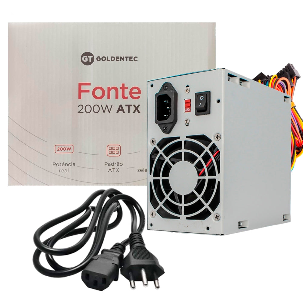 Fonte de Alimentação ATX 200W Potência Real Goldentec GT200R Com Cabo de Força