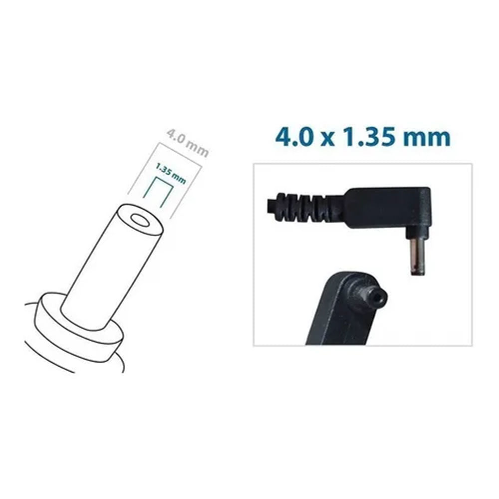 FONTE CARREGADOR PARA NOTEBOOK 19V 2.37A 45W - Plug. 4.0 x 1.35 mm Cabo de força (Tripolar) - Incluso