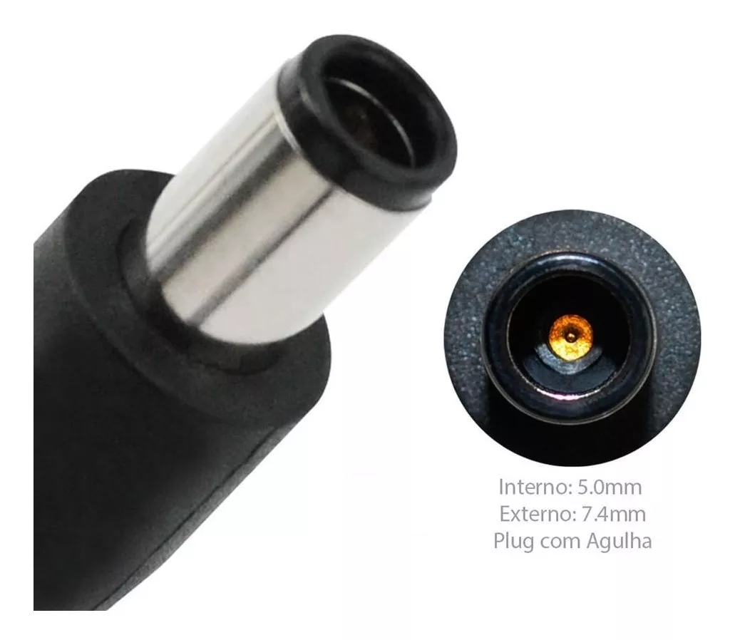 Conector: 7.4mm x 5mm (PINO GROSSO, AGULHA CENTRAL)