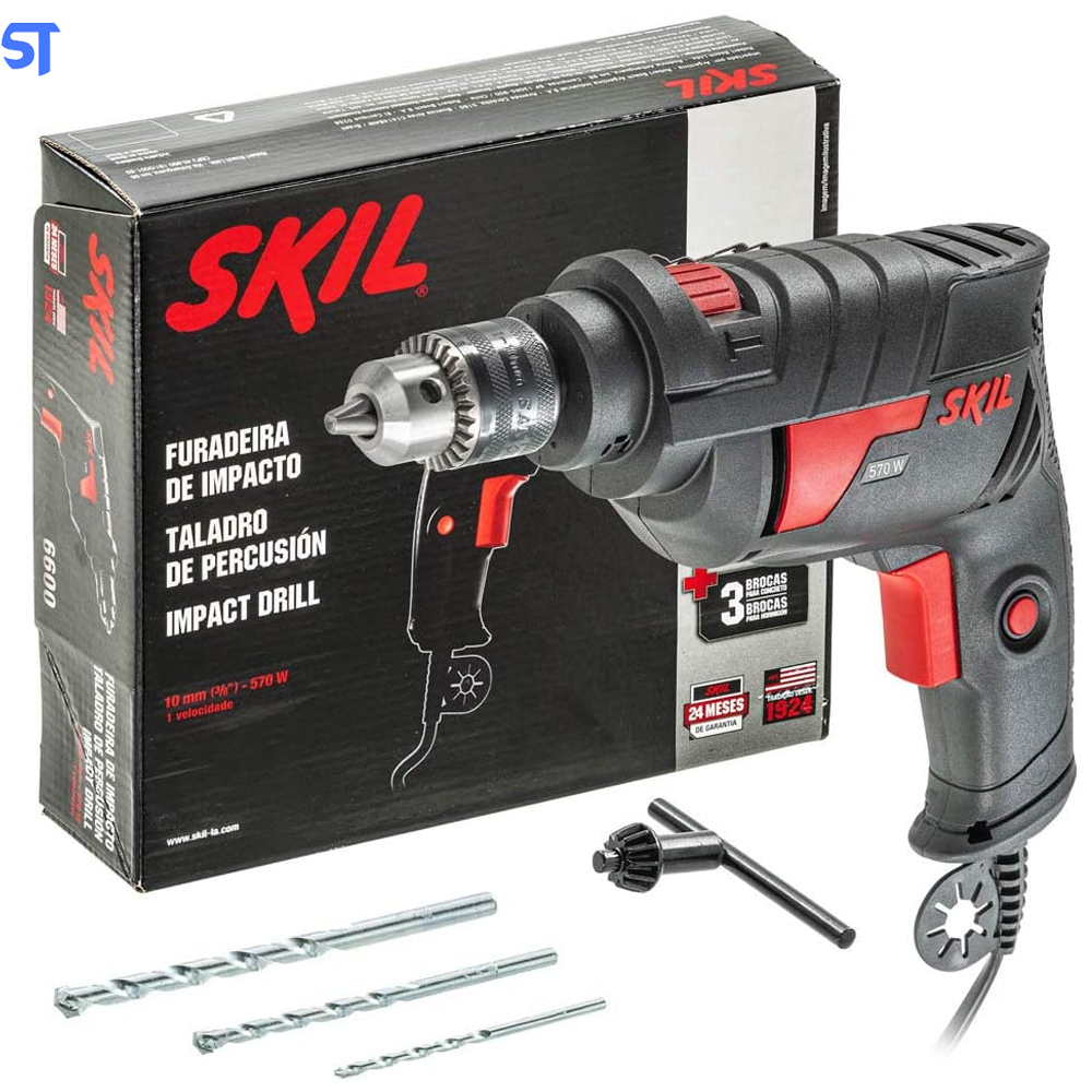 Furadeira de Impacto Skil 10 6600, 570 Watts Compacta e super leve, a Furadeira de Impacto Skil 10 6600 é ideal para quem procura uma ferramenta básica e ao mesmo tempo com potência para diferentes tipos de trabalhos. Indicada para uso Hobby, ela fura aço, madeira e concreto com eficiência, graças aos 570 Watts de potência.