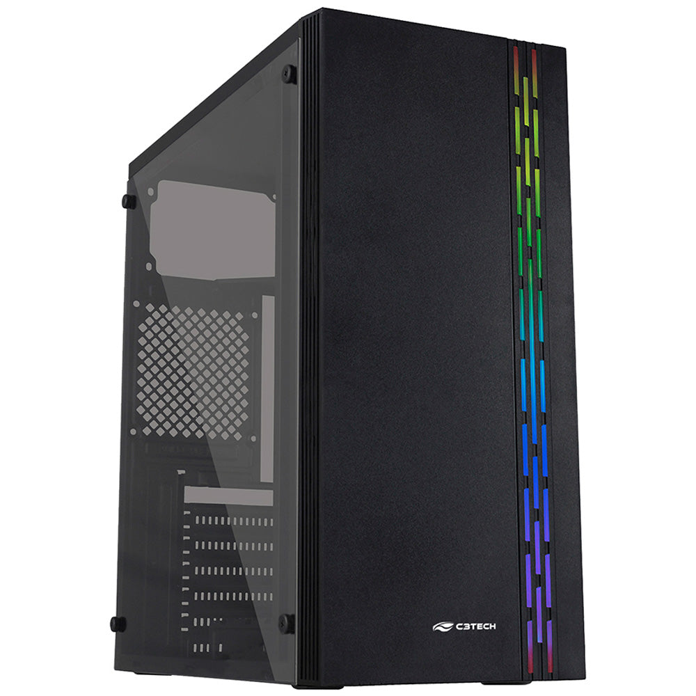 Gabinete Gamer C3Tech MT-G230BK USB Sem Fonte Lateral Acrílico Frontal Faixa LED RGB