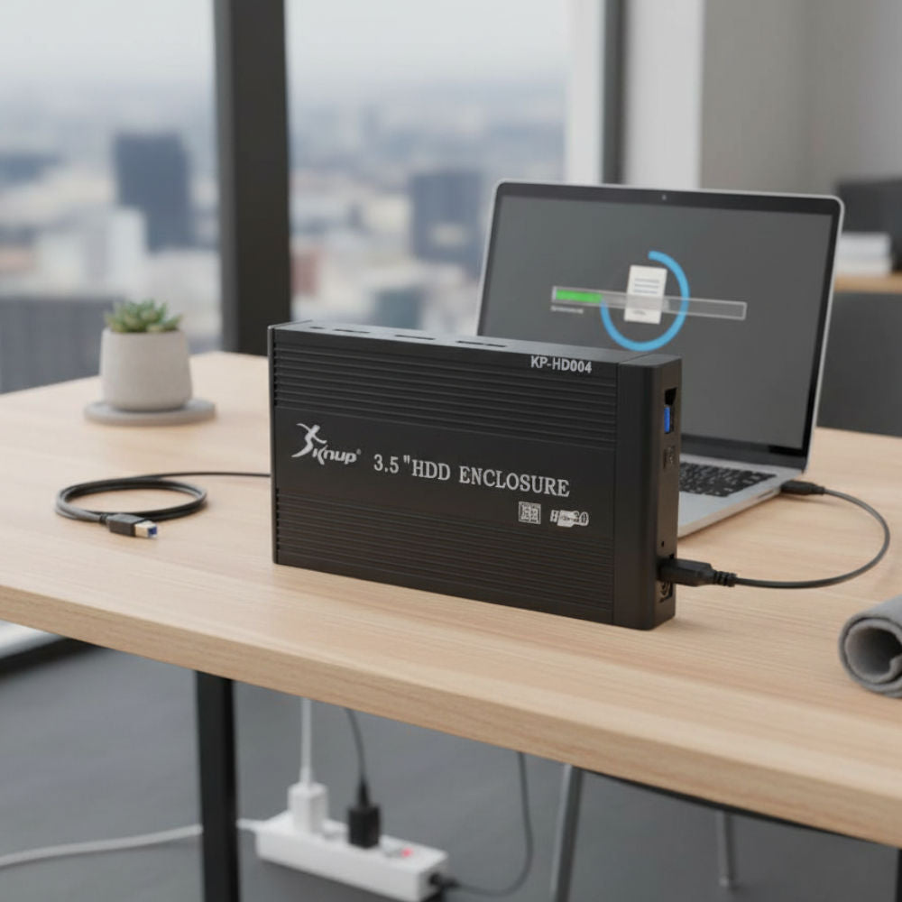 A Knup KP-HD004 é compatível com Windows, macOS e Linux, sem necessidade de drivers adicionais. O dispositivo acompanha fonte de alimentação externa para garantir energia adequada ao funcionamento de HDs de 3.5”. Ideal para armazenamento externo, backups automáticos ou expansão de capacidade em desktops, notebooks e Smart TVs.