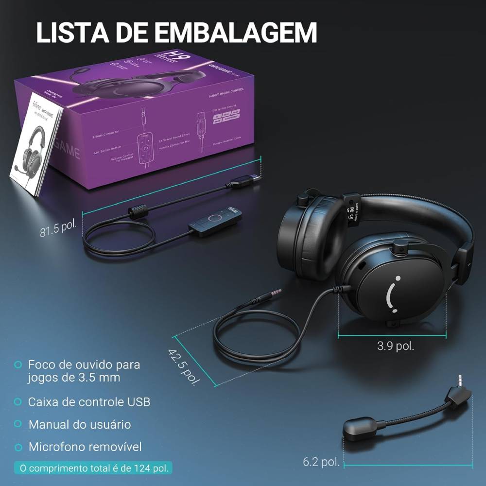 Headset Gamer Fifine H9, Som Surround 7.1, USB, Console e PC, Preto - H9