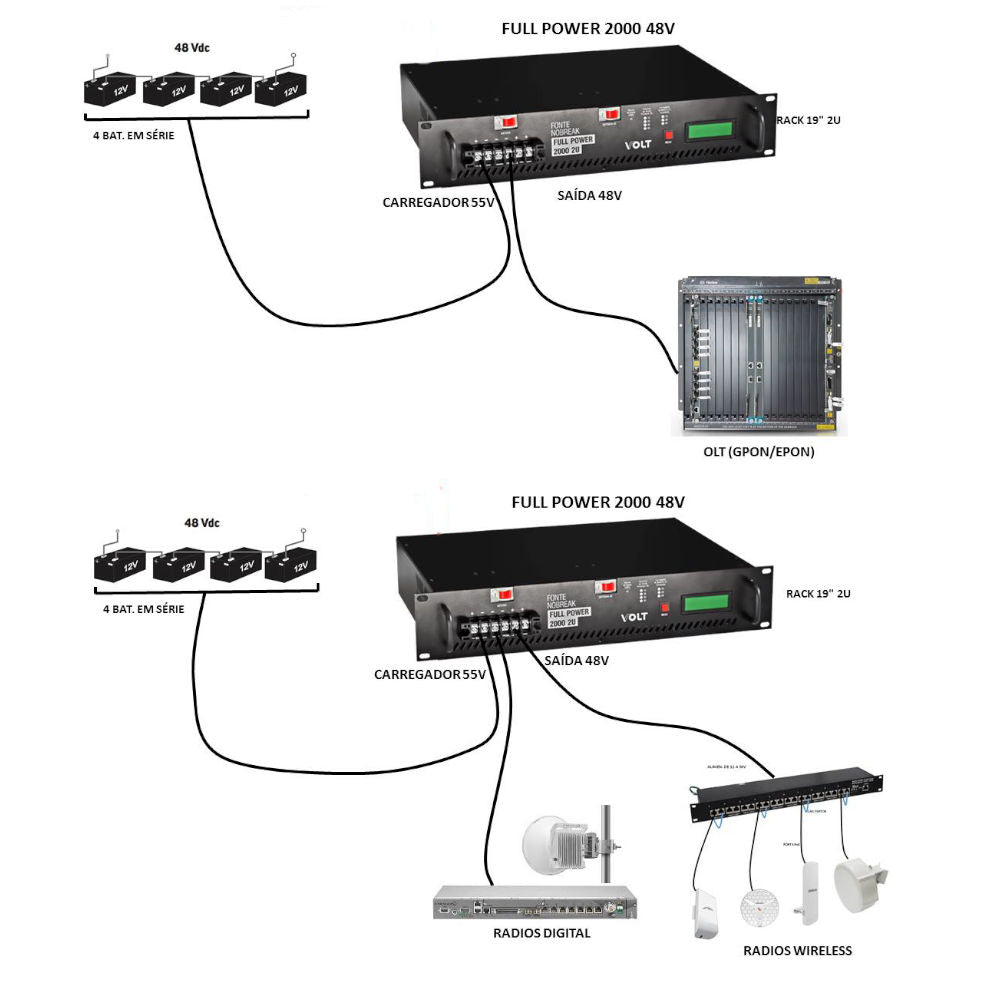 Inversor Senoidal VOLT Full Power 2000W 48VDC para 220VAC – Onda Pura, 2U Rack