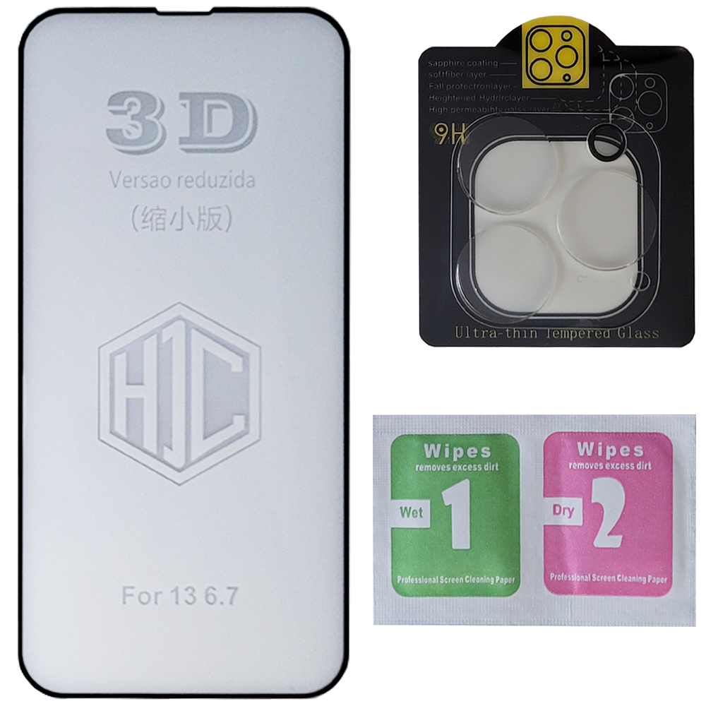 Kit Película Vidro 3D Temperado + Película Câmera Lente para iPhone 13 Pro Max
