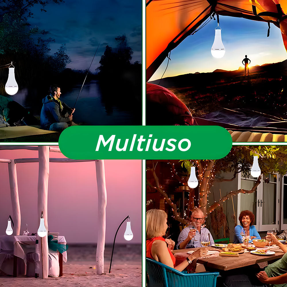Com proteção à prova d'água, essa lâmpada é ideal para áreas externas como varandas, jardins, quintais, acampamentos ou locais sujeitos a intempéries. Sua funcionalidade de emergência garante luz mesmo em caso de falhas na rede elétrica, proporcionando segurança e conveniência em todas as situações.