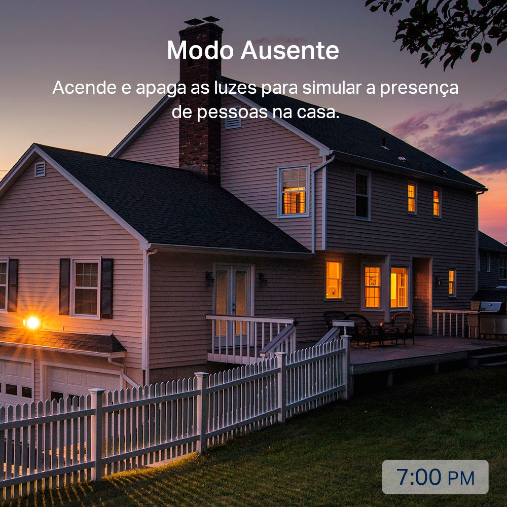 - Modo Ausente – Simule automaticamente a presença de alguém em casa para espantar visitantes indesejados.
