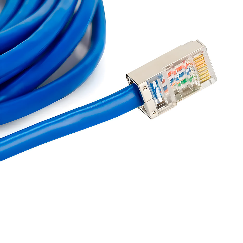 O cabo possui revestimento externo na cor azul, facilitando a identificação visual em racks, centros de distribuição de rede ou instalações domésticas. Isso é especialmente útil em ambientes com grande quantidade de cabos, permitindo rápida organização e manutenção. -