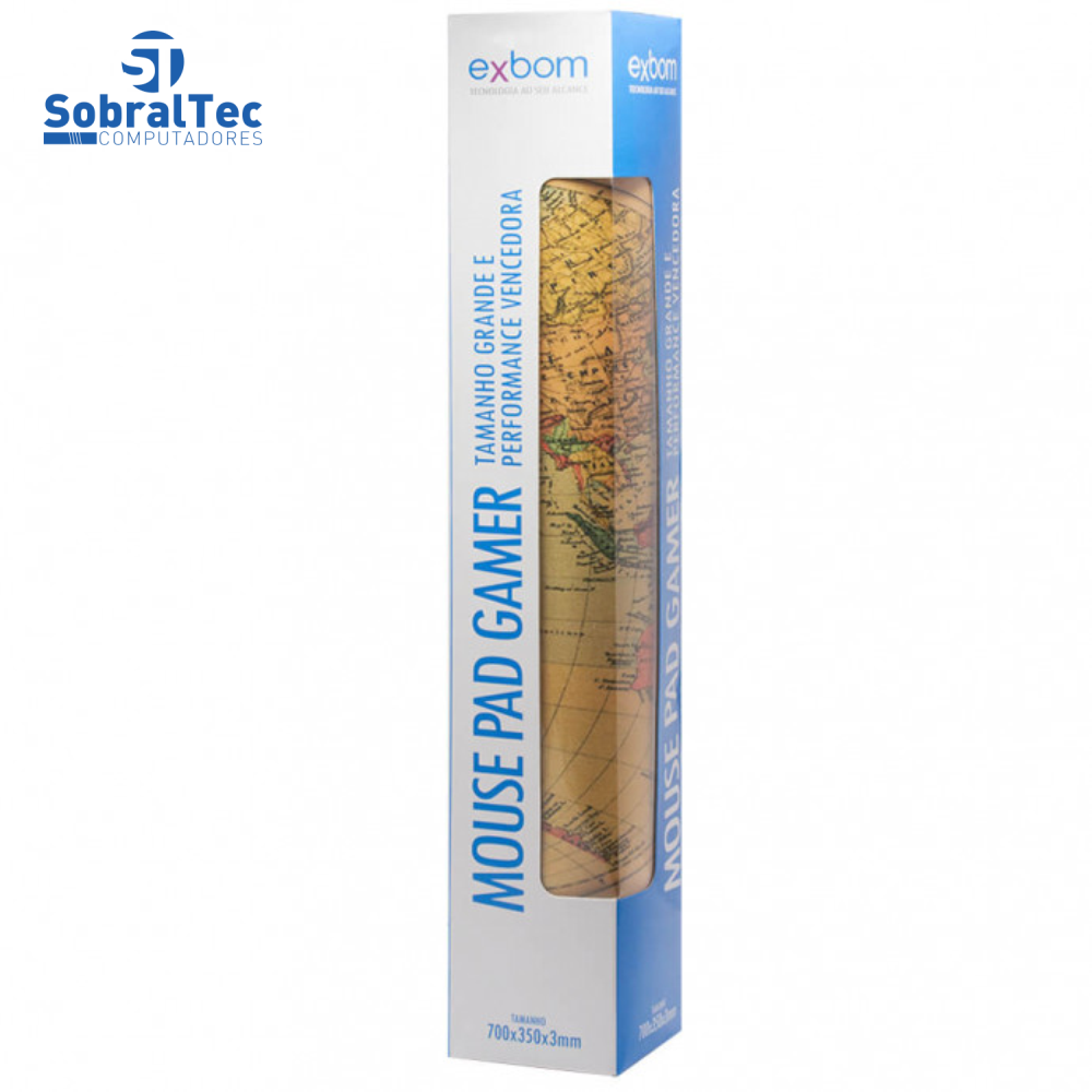 Mouse Pad Gamer Extra Grande 700x350x3mm Bordas Costuradas e Base Antiderrapante Exbom MP7035C Mapa Mundi