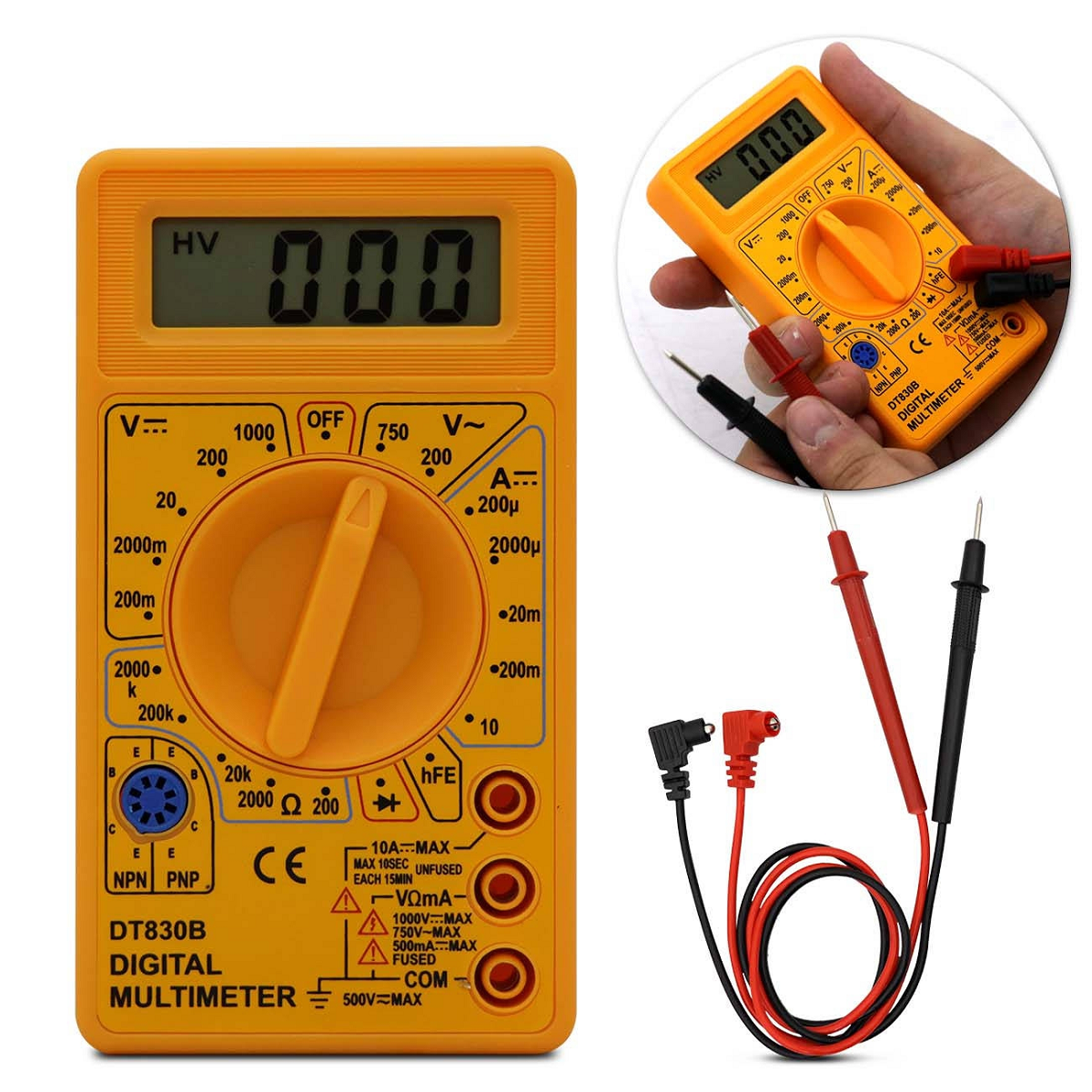 Multímetro Digital DT-830B Multi Teste para Medição de Tensão Contínua e Alternada Bateria 9V Amarelo .Se você está precisando de ferramentas com eficácia para lhe auxiliar em tarefas do cotidiano, seja em laboratórios, oficinas ou até mesmo para o uso doméstico, conheça este Multímetro Digital DT-830B e se surpreenda com a praticidade! ..Oferecendo basicamente a função de medição de tensão contínua e alternada, corrente contínua, resistor, transistores e diodos, conte ainda com a alimentação da bateria de 9V já inclusa, entre outras funcionalidades. Confira a tabela de especificação técnica e fique por dentro de todas as vantagens! ..Modelo Disponível: .&bull, DT-830B ..Cor Disponível: .&bull, Amarelo