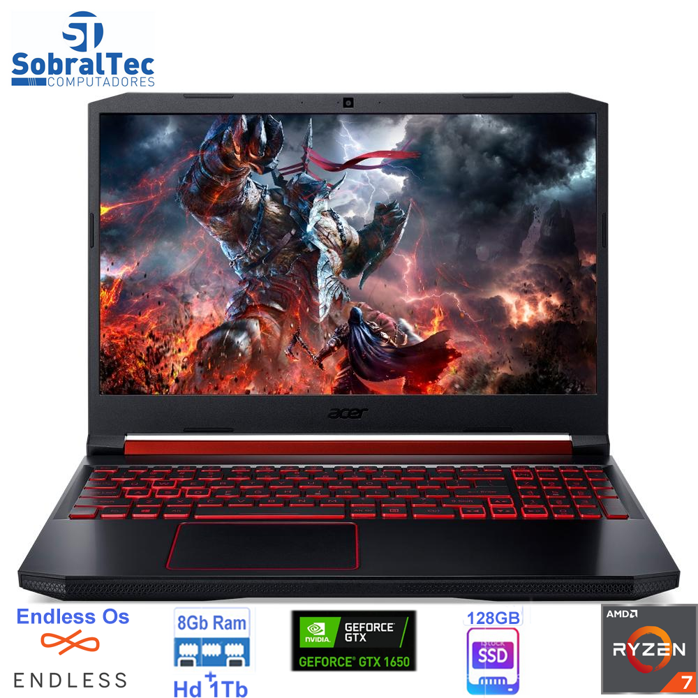 Os adversários já começam a partida respeitando seu time. experimente todo o potencial dos seus jogos. O notebook gamer Acer Aspire Nitro 5 vem com uma configuração que vence os jogos mais pesados. O seu processador AMD Quad Core e memória RAM de 8 GB, expansível a 32 GB, você viverá as maiores emoções em máxima velocidade. A super placa de vídeo NVIDIA GeForce GTX 1650 com 4 GB de memória dedicada GDDR5 traz a performance que você precisa para surpreender seus adversários e jogar com alto nível de realismo. Se é capacidade e poder que você quer pra ter a a vantagem na jogada, conte com o desempenho do processador AMD Ryzen 7 Quad Core, além dos 8 GB de memória tipo DDR4, expansível até 32 GB. Além de 1 TB HDD para armazenar todos os jogos, arquivos e projetos pesados com segurança, o Acer Aspire Nitro 5 vem equipado com 128 GB SSD, que possui velocidade de leitura e gravação 5x mais rápida que um HD tradicional. Com seu sistema operacional e jogos instalados nele, tudo abrirá em poucos segundos! O desing expira o estilo gamer, com acabamento premium texturizado e detalhes robustos nas laterais, além de uma tela mais fina. Viva toda a ação. Notebook Gamer é na SobralTec!