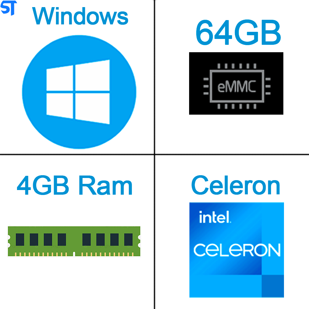 - Processador: Intel Celeron N4020 Dual Core 1.1 - 2.8 GHz